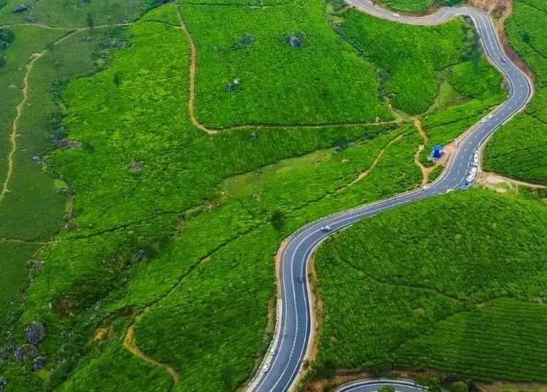 A misty, scenic drive weaving through tea plantations, waterfalls, serene dams, and rolling hills—a nature lover’s dream route.